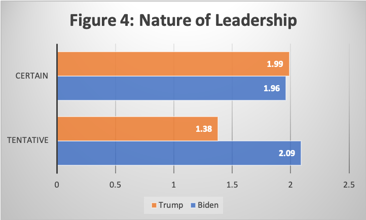 Figure 4 below summarizes how Biden is able to co-hold certainty and tentativeness – yes there is a heavy price to pay. Biden and his followers would often be criticized of being weak, scared (lurking in basements during Covid-19 pandemic), unsure and ambivalent.